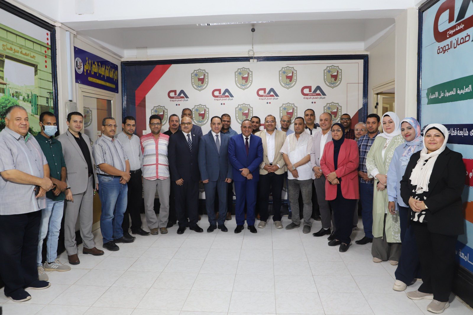 تحت رعاية السيد الأستاذ الدكتور/ حسان النعمانى – رئيس الجامعه وبحضور ومشاركت كلا من السيد الاستاذ الدكتور/ خالد عمران – نائب رئيس الجامعة ، والسيد الاستاذ الدكتور/ محمود المنشاوي – مدير مركز ضمان الجودة ، والسيد الدكتور /جمال سرور – مدير مركز الاحصاء والتحول الرقمي.
